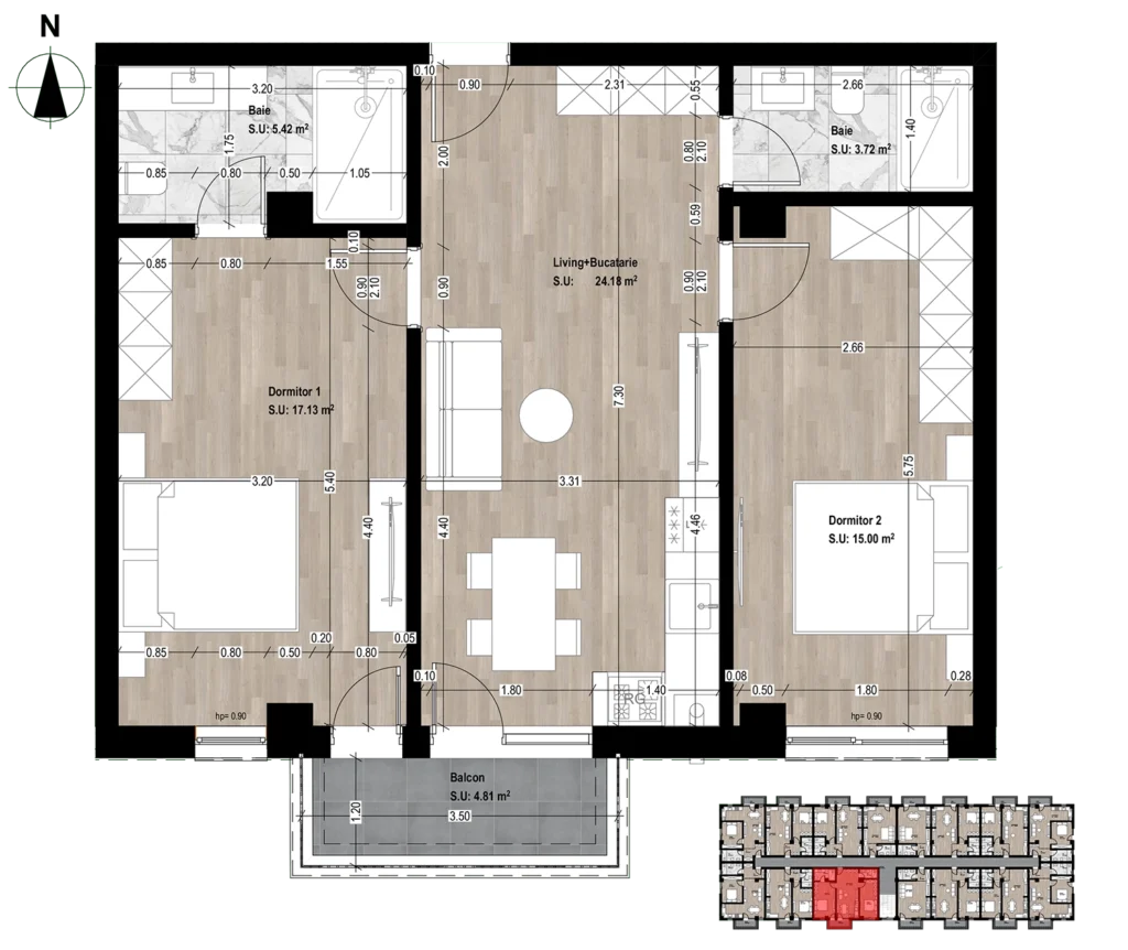 - Suprafață utilă totală: 70.26 mp