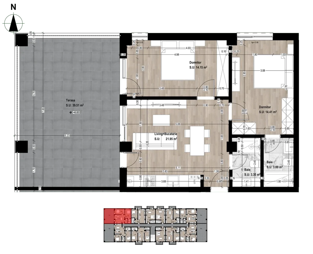 - Terasă: 39.51 mp