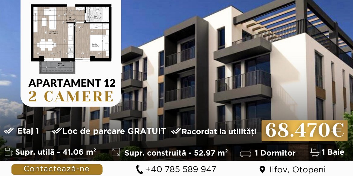 De vanzare Avram Iancu 66e Proiect Nou Complex Lara, str. Avram Iancu 66e, Otopeni, 15 ap demisol 68,240€ + TVA 1 Dormitor 1 Baie 66.05 m2